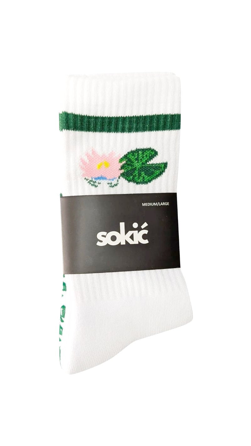 Step onto your mat with confidence in the White Lilypad Crew Grip Socks—where style meets stability for your perfect practice.