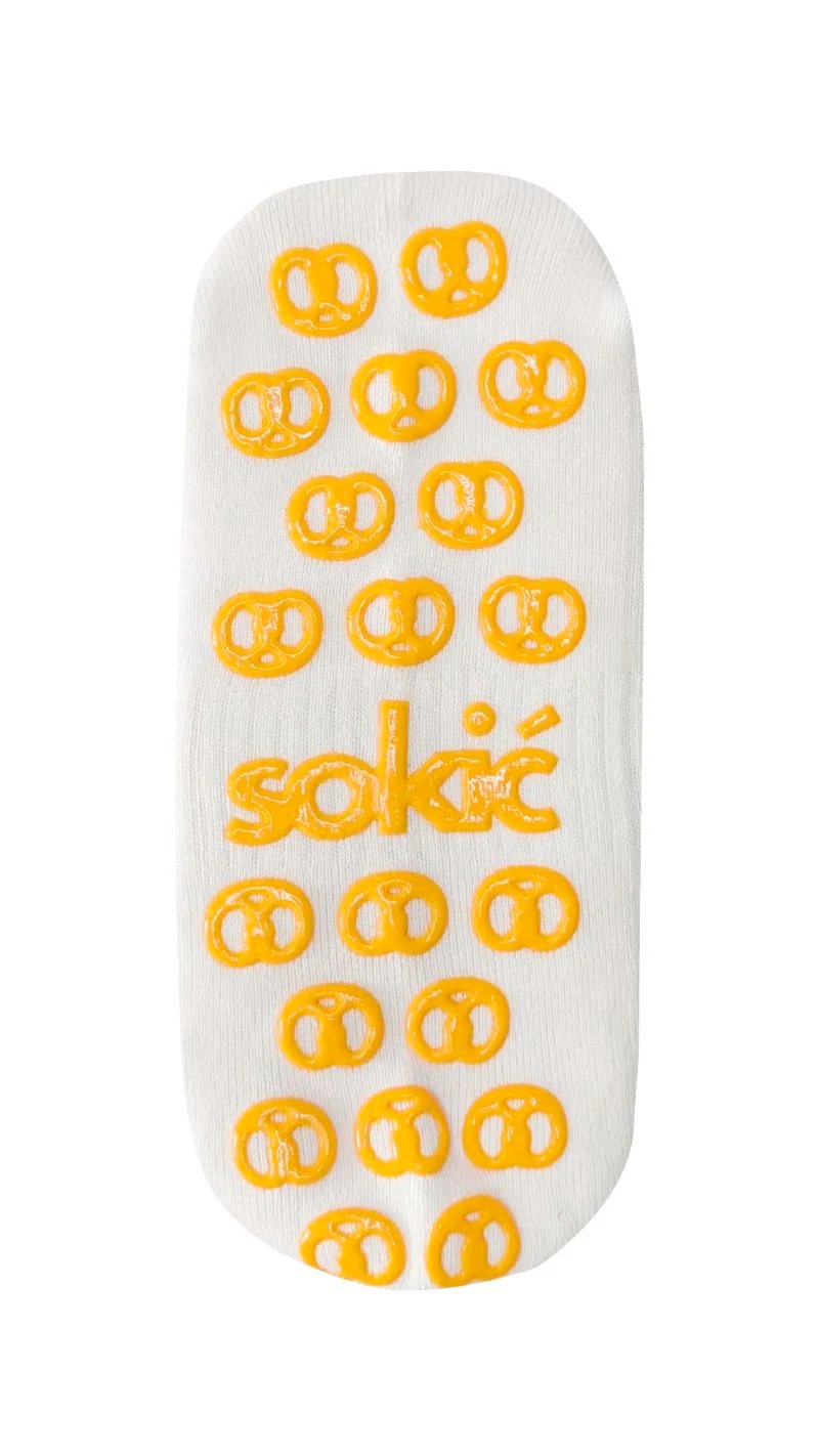 A fresh take on a classic favorite—introducing the White Pretzel Pilates Grip Socks! With a crisp white base and pretzel-shaped grip patterns on the soles, these socks are perfect for adding a little extra traction to your yoga, pilates, or barre routine. The soft, breathable fabric keeps your feet comfortable, while the crew-length fit provides extra support and warmth. Whether you're flowing through poses or lounging in cozy style, these socks bring the perfect mix of function and fun.